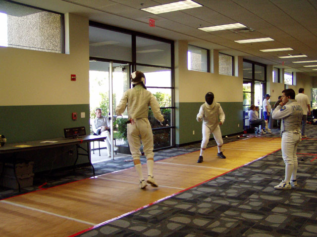 I competed recently in my university club's own divisional tournament. If you are ignorant of the noble science of fencing, thrill to the dramatic photos below! If you do know something of this sport, don't bother—I've already heard all about my lousy form from my coach...